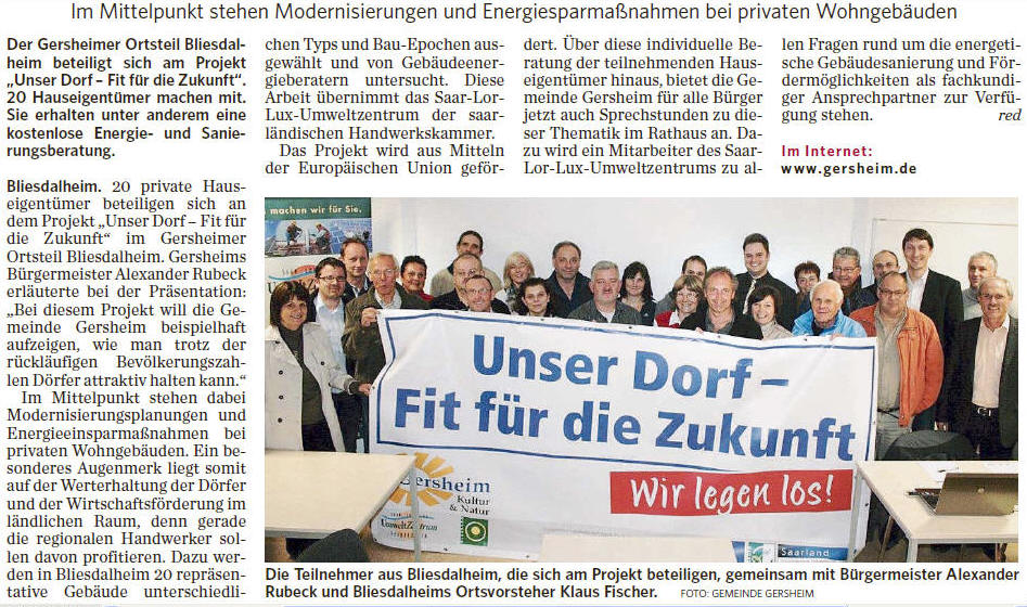 Bliesdalheim. In Bliesdalheim wurde eine Geschichtstafel enthüllt. Sie soll Anstoß zur Revitalisierung des historischen Dorfplatzes sein, meinte Ideengeber Andreas Stinsky am Rande der kleinen Feierstunde. Der Museumsleiter im Europäischen Kulturpark Bliesbruck-Reinheim, gebürtiger Bliesdalheimer, war mit seinem Vorhaben im Ortsrat auf offene Ohren gestoßen, hatte anschließend keine Probleme mit der Umsetzung. Zu den Gesamtkosten von 1500 Euro steuerte die Gemeinde ein Drittel hinzu. Jetzt können sich sowohl Einheimische als auch Besucher an der Bushaltestelle in der Bliestal über interessante Details der Dorfgeschichte informieren. Stinsky erwähnte, dass die Tafel ein Teil dessen sei, dass der Europäische Kulturpark zusammen mit der Kreisverwaltung und in Zusammenarbeit mit den örtlich Verantwortlichen über die Parkgrenzen hinaus innerhalb der Region Kulturförderung betreiben wolle. „Bliesdalheim ist ein Ort, der mustergültig dafür steht, dass alte Dorfplätze verwaisen“, so Stinsky. Er mahnte dazu, dem entgegen zu wirken. Das soziale Leben müsse wieder in die Ortskerne zurückkehren sie als gesellschaftliche Mittelpunkte stärken.