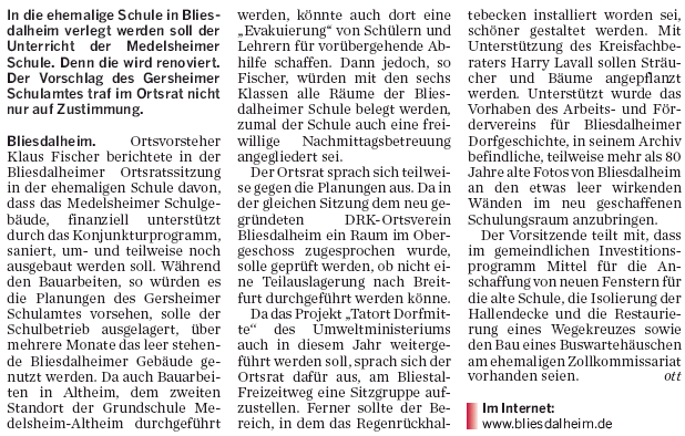 Bliesdalheim. 800 Jahre Bliesdalheim, das wird von Freitag, 1. bis Sonntag, 3. Juni, zünftig gefeiert. Schon seit Monaten bereiten sich rund 50 Personen in verschiedenen Arbeitsgruppen unter der Leitung von Ortsvorsteher Bernhard Welsch intensiv darauf vor. „Es ist das erste Mal, dass der Ort eine Jahrhundertfeier organisiert und durchführt“, stellt Bliesdalheims erster Bürger fest und freut sich, dass die Hilfe und Bereitschaft mitzuarbeiten quer durch die Generationen groß ist. Dadurch sei eine intensive Gemeinschaft entstanden. |